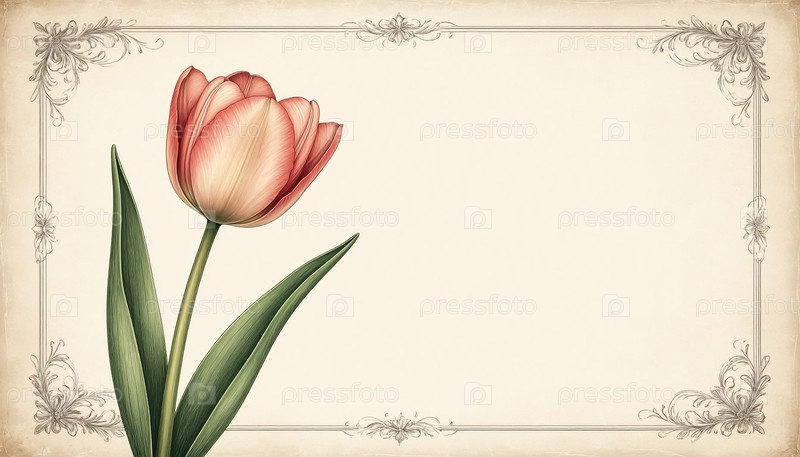 Фоновый макет с ручным рисунком границы и тюльпановых пастельных цветов для приветствия