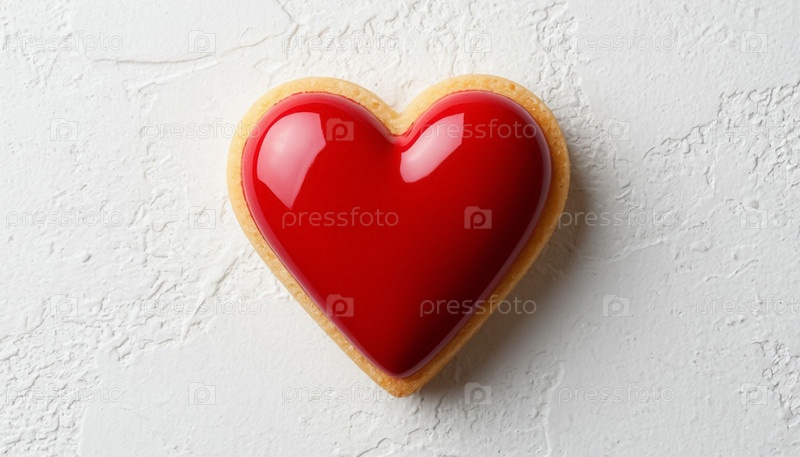 Сладкий десерт с печеньем красное сердце на белом фоне