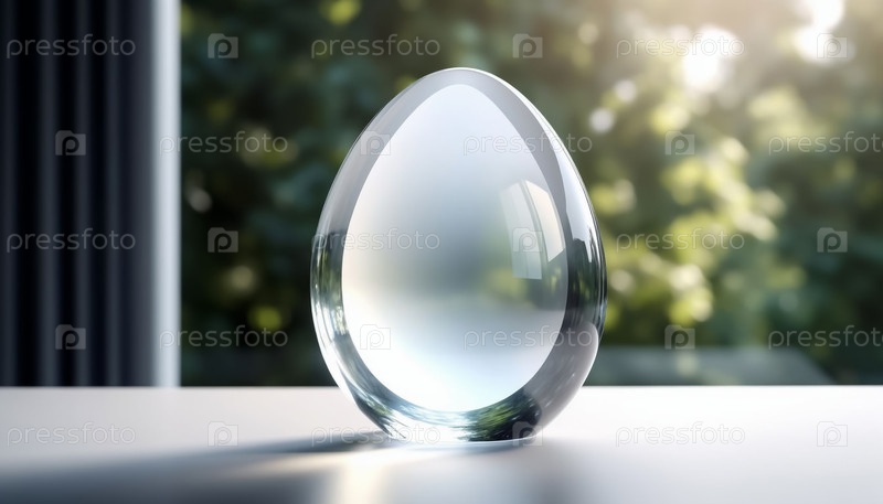 Яйцо на белом столе Естественный зеленый стеклянный фон