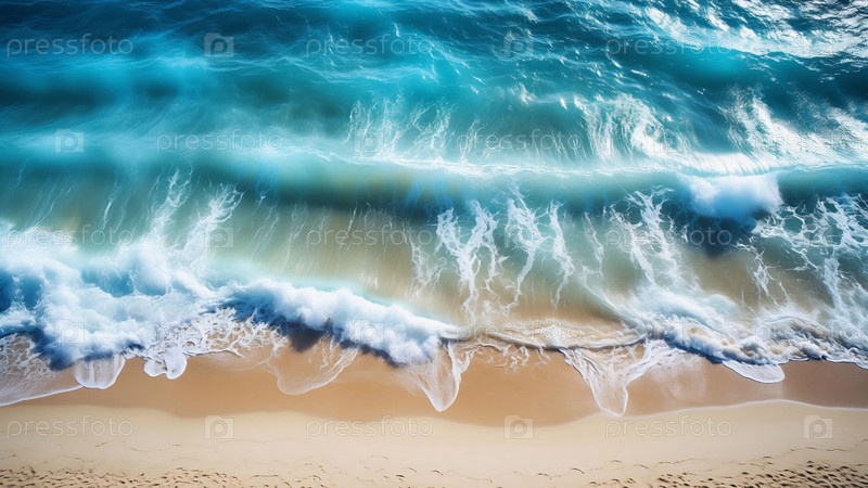 Azure Sea Wave Rolling onto Sandy Beach Aerial Top View (Азурная морская волна, движущаяся на песчаный пляж)