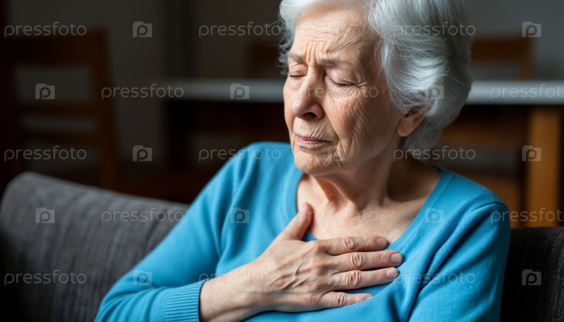 Зрелая женщина держит левую сторону грудной клетки от боли в ближайшем плане