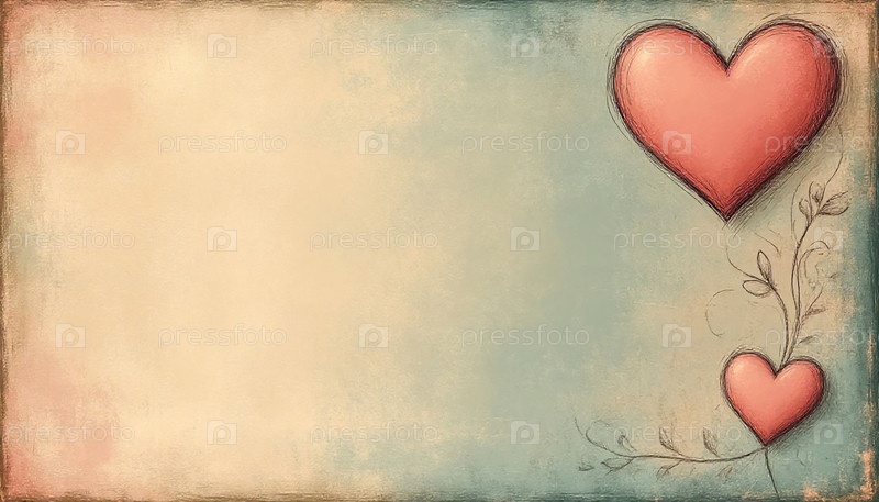 Винтажная бумажная текстура с ручными рисунками сердец границы пустые поздравительные карточки