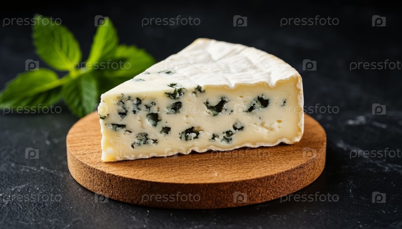 Мягкий синий сыр на деревянной доске Темный стол Пищевой стиль