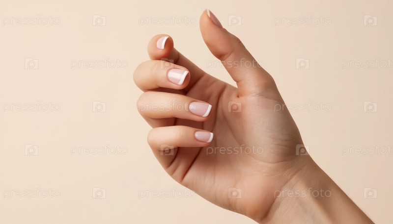 Женская пальма с французским маникюрным ногтями на бежевом фоне