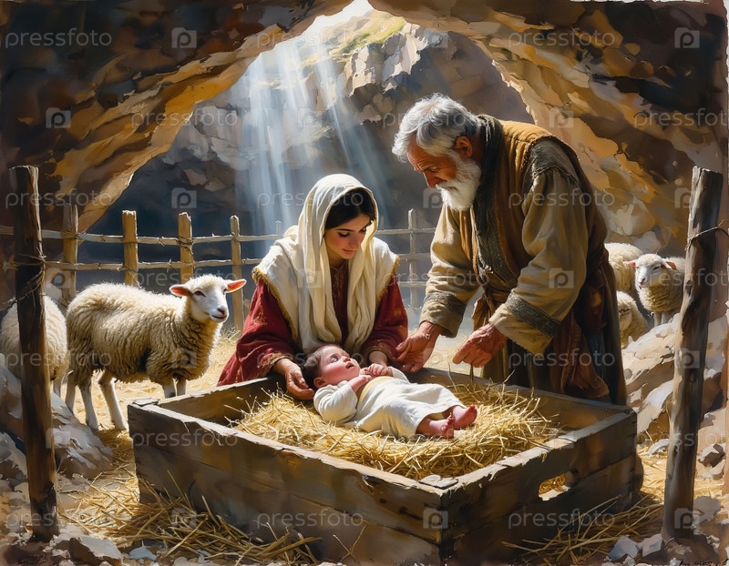 Рождественская сцена в пещере Вифлеема Digital Art Banner