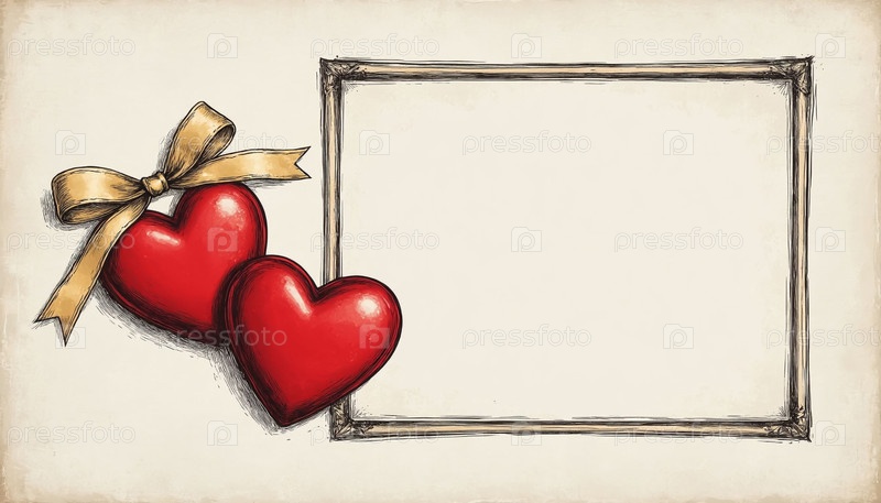 Мокап ретро-карты с ручными рисунками сердец и Doodle Border Blank для сообщения