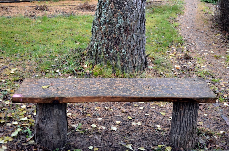 Осенний пейзаж.Старая скамейка, засыпанная опавшей листвой