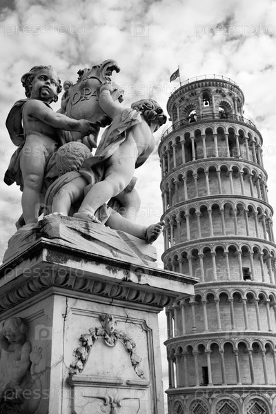 Наклонная башня Пизы и скульптурные ангелы