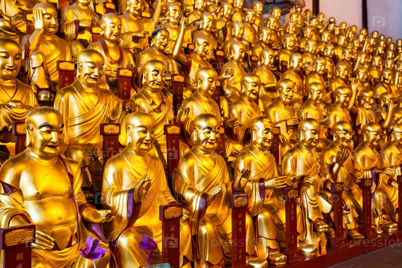 Статуи архатов в буддийском храме в Шанхае