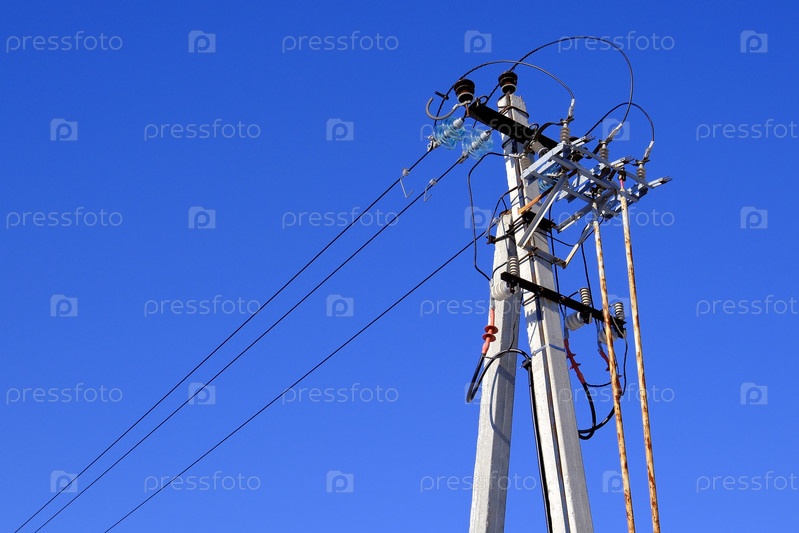 Электрические коннекторы, разъединители с ручным приводом, изоляторы и механизм включения на электрической бетонной опоре Россия Воронежская обл Февраль 22 2026 г