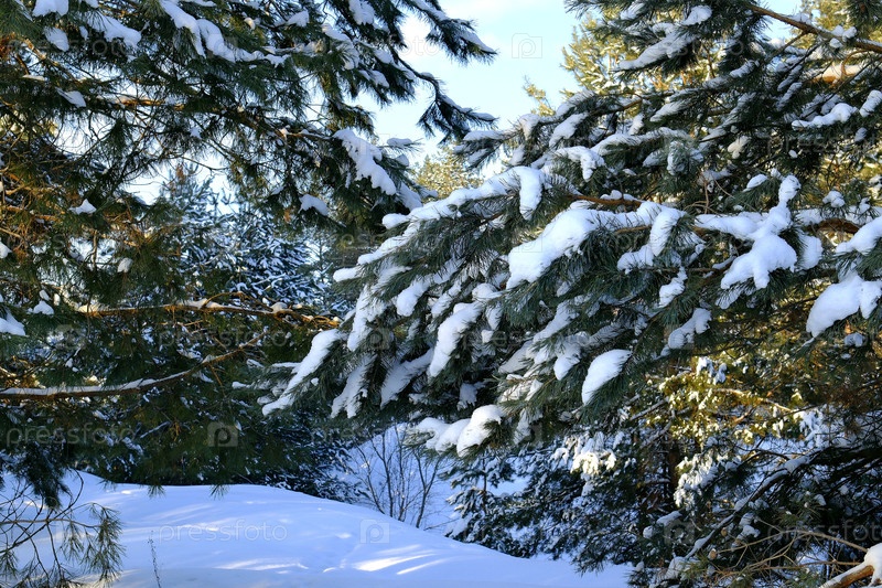 Хвойный лес зимой. Ели усыпаны свежевыпавшим снегом. Ясный солнечный морозный полдень. Россия Воронежска обл Январь 24 2026 г