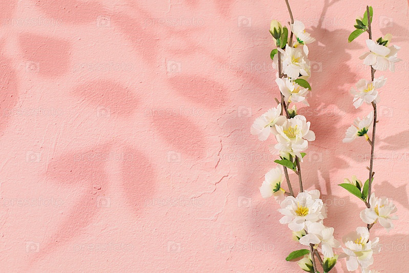 Абстрактные весенние цветочные аранжировки, натюрморт с красивыми цветящими ветвями вишневых цветов и экранированный баннер со свободным местом для текста