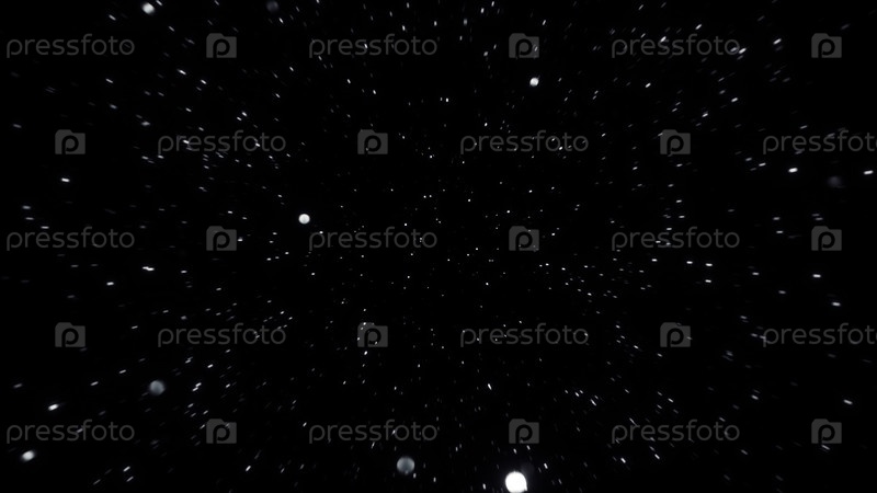 Белые частицы, имитирующие звезды или снежинки, создают эффект динамического движения на черном фоне