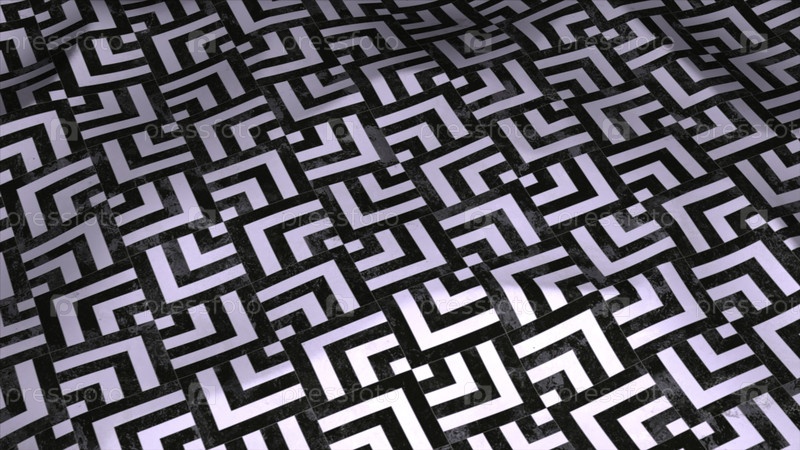 Моделированный пол движется волнами. Движение. Плиткий пол с геометрическим рисунком двигается в волнах. 3D-поверхность с текстурой и узором перемещается по волнистым полоскам