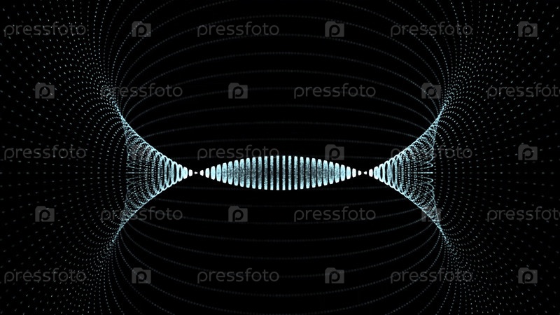 Движущийся туннель из неоновых точек. Анимация. Цифровой абстрактный светящийся тоннель на черном фоне. Графическая световая воронка со стороны. вращающийся портал частиц к музыкальным вибрациям