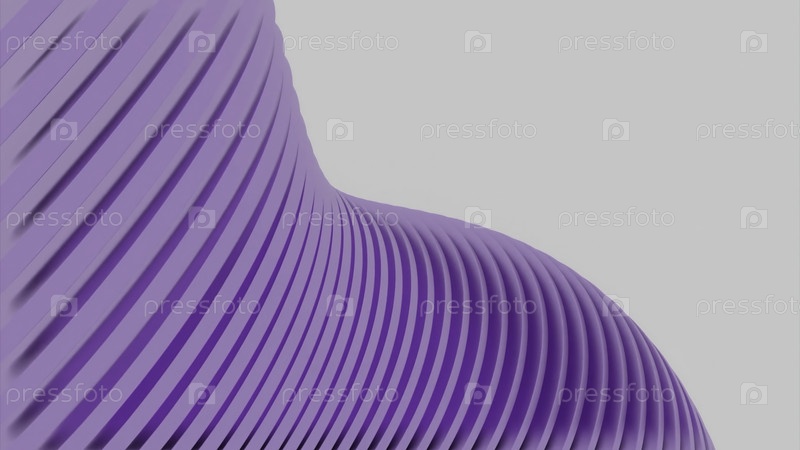 3D-анимация с движущейся волнообразной полосовой фигурой. Дизайн. Движущаяся 3-мерная фигура с полосатыми вырезками. Полосатые 3-мерные фигуры перемещаются в волнистом потоке на белом фоне