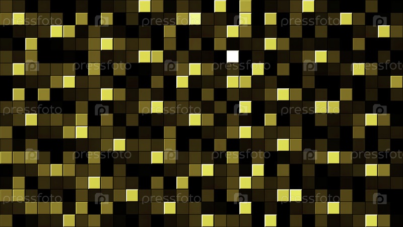 Текстура мигающих пикселей. Движение. Золотые ряды небольших квадратов, протекающие и светящиеся справа налево