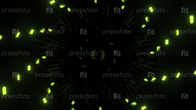 Бесконечный тропический туннель неоновых огней на черном фоне. Дизайн. вращающаяся красочная спираль, создающая гипнотический эффект