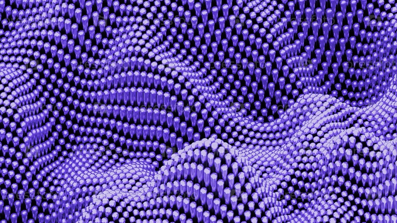 Фиолетовые шары на фоне в волновом движении. дизайн. минимальная волнистая поверхность с сферами