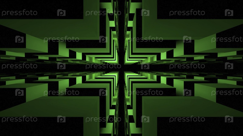 Разрыв в пространстве квадратов. Дизайн. Сакральная трещина в лабиринте. 3D-пространство квадратов с темной щелчкой. Темная узкая пропасть в квадратном туннеле