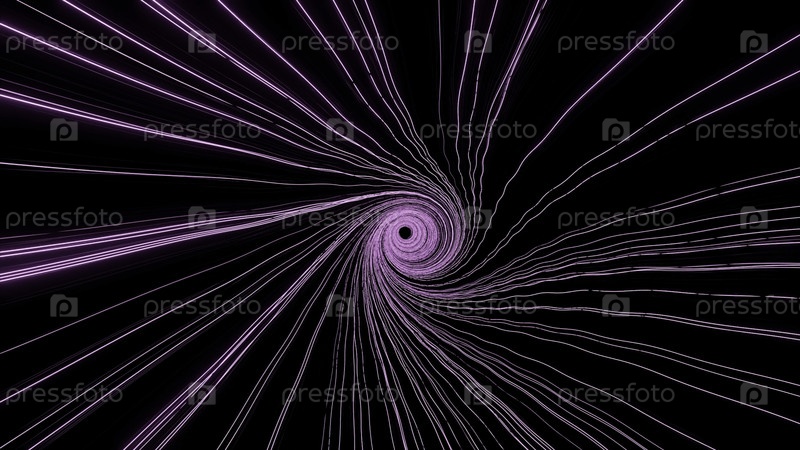 Темный фон. дизайн. фиолетовые крутящиеся тонкие линии, которые вращаются в окружности в абстракции