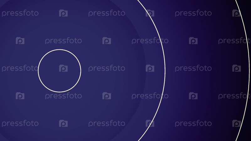 Светящиеся белые круговые рамы движутся назад в бесконечном туннеле на синем фоне. Дизайн. Круглые узкие линии безграничное движение