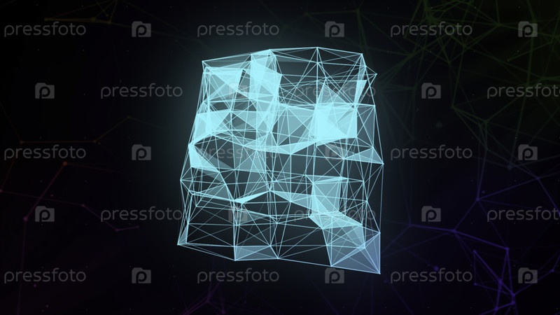 Темный фон.Движение.Красивая прозрачная геометрическая фигура, сделанная в анимации на фоне и которая блестит различными оттенками в тени
