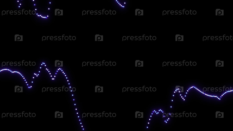 Абстрактные синие волны на черном фоне, Дизайн.Флуктуирующие движущиеся линии крошечных частиц