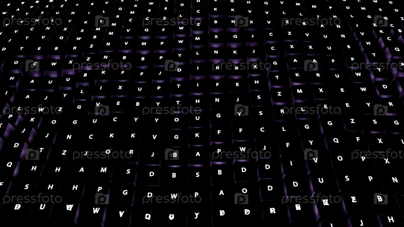Английская клавиатура с случайными буквами. Дизайн. Перемещающиеся черные кнопки с буквами, выполненными в формате 3d. Высокое качество 4k кадров