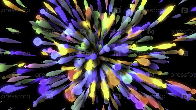 Черный фон. движение. объемные многоцветные короткие линии разбросаны по всему кадру в анимации