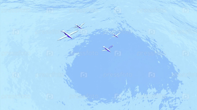 3D-анимация с птицами, летающими над морем. дизайн. верхний вид птиц, летящих над голубой водой. простая анимация с синим морем и птицами
