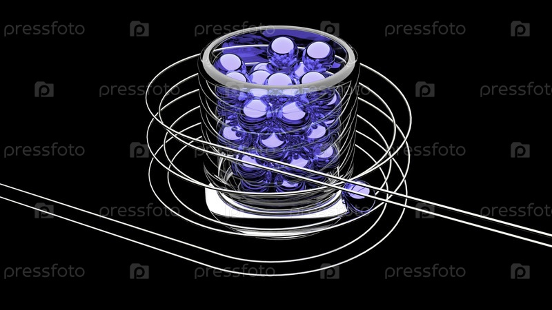 3D-анимация шаров, вращающихся по спирали. Дизайн. Анимация со спиральной игровой настройкой и шарами, качающимися вдоль нее. Красивые шарики вращаются вверх по спирали на черном фоне