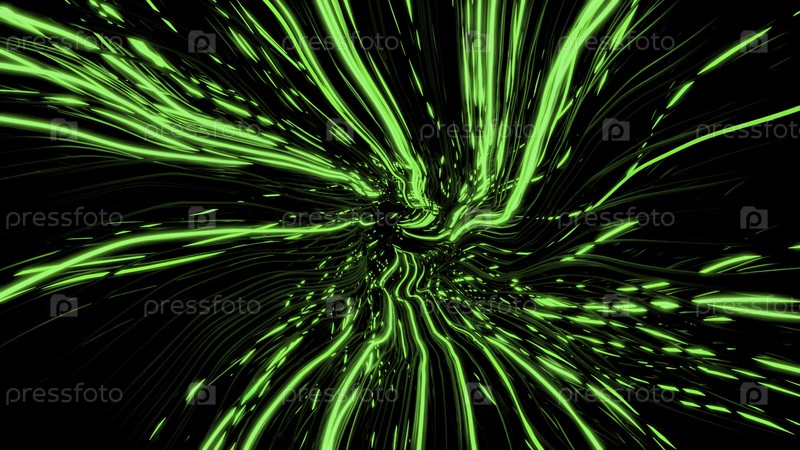 Неонные линии в перспективе искажены. Дизайн. Неспособность с искажением неоновых централизованных линий. Яркие линии, движущиеся к центру, искажаются волнистыми потоками. Матричные искажения