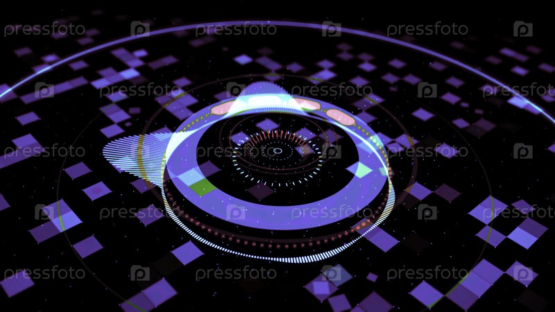 Футуристическая музыкальная анимация с неоновыми узорами на черном фоне.Анимация.Эквалайзер с пульсирующим бассом в центре и яркими неонными геометрическими узорами вокруг него