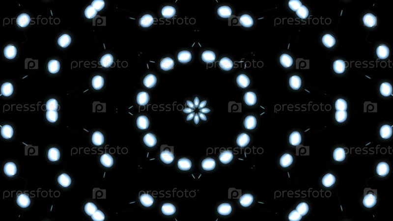 Движение световых точек в гипнотическом рисунке. Дизайн. Простой калейдоскопический рисунок с световыми точками. Движение абстрактных кругов светящихся точек в рисунке
