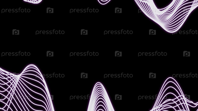 Абстрактные фиолетовые полосы. Дизайн. Движение и изгиб анимированных струн на черном фоне