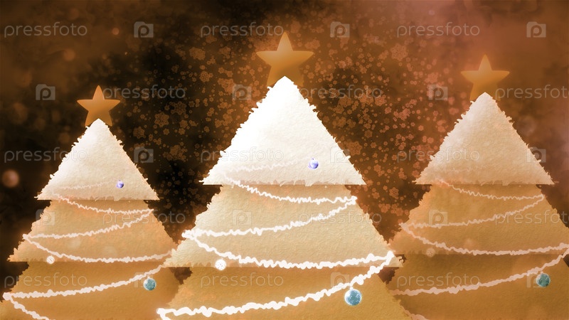 Схематические рождественские елки со звездами на вершинах и надписью "Счастливый Новый год". движение. концепция зимних каникул