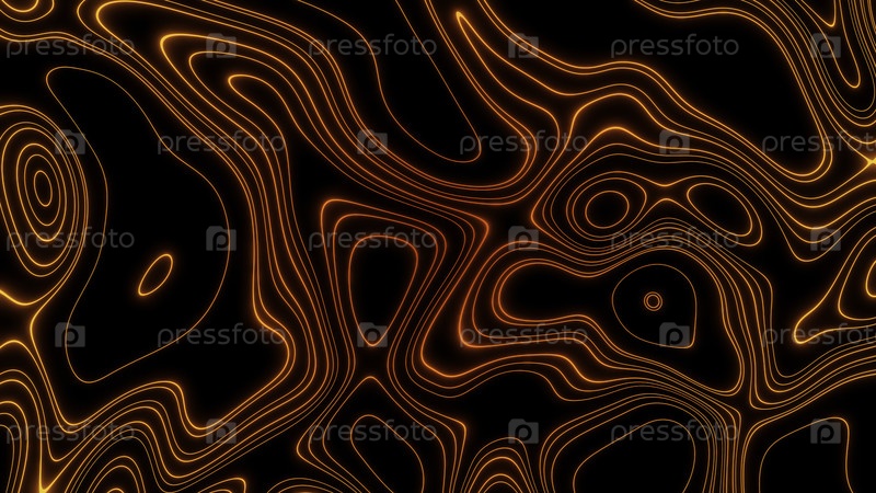 Абстрактные искривленные и размахивающие оранжевые линии, изолированные на черном фоне. Дизайн. Узкие движущиеся овальные формы