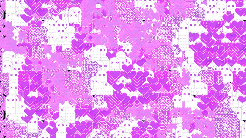 Абстрактный белый фон с хаотично мигающими розовыми маленькими сердцами. Дизайн. Романтические розовые сердца и улыбающиеся лица