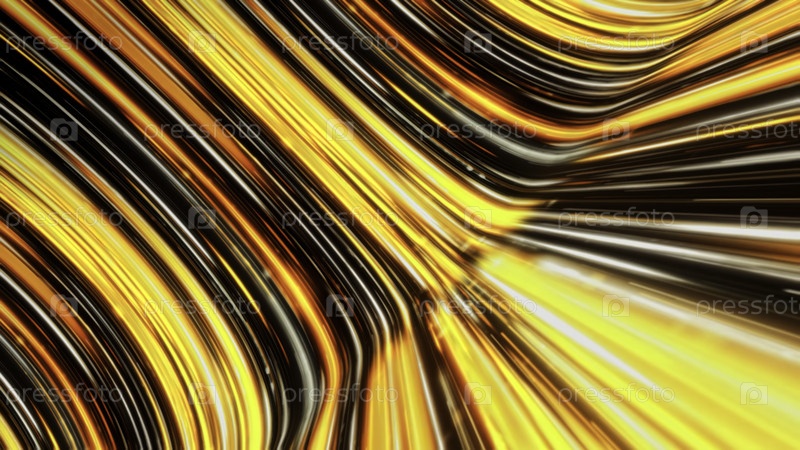 Путешествие во времени через червоточину со скоростью света в космическом пространстве.Анимация.Золотой текущий поток изгибается и светит, бесшовная петля