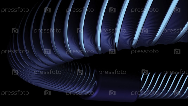 Загнутый шланг, движущийся на черном фоне. Дизайн. 3D-модель трубы, двигающейся вдоль изогнутой траектории. Труба с светящимися вырезками движется вдоль крепления