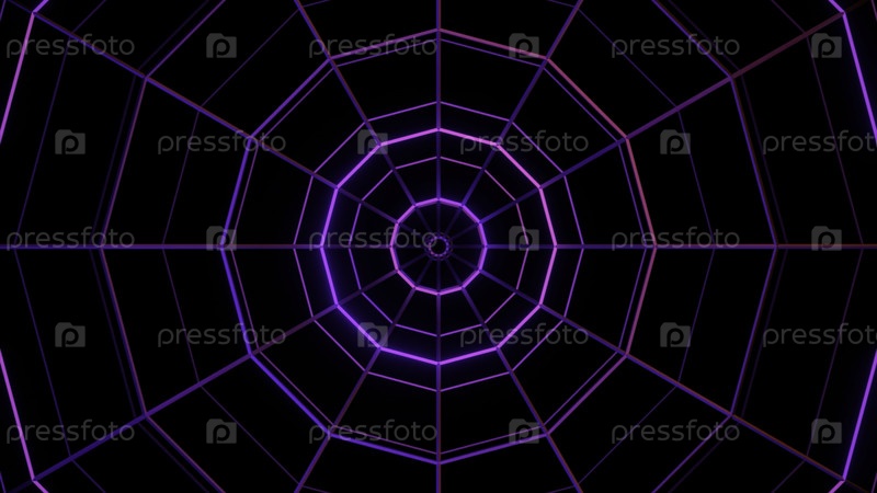 Пульсирующее движение круглых форм на темном фоне. Дизайн. Кольца, похожие на паутину