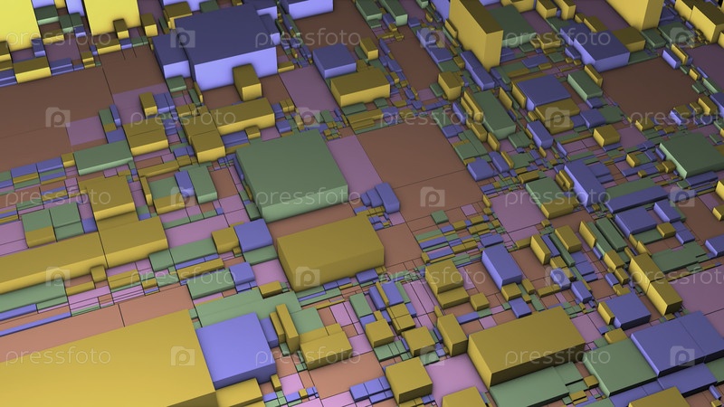 Движущаяся схема цветных квадратов.Движение.Схема 3D-карты цветовых квадратов.Многие цветные квадраты движутся по искаженной поверхности.Абстрактная материнская плата