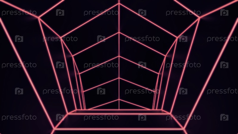 Абстрактный красочный силуэт тоннеля на черном фоне, бесшовная петля. дизайн. летающий внутри шестиугольного туннеля