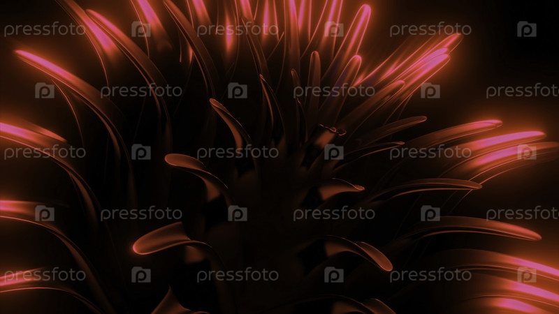 Красные неоновые огни.Дизайн.Черный фон, на котором сверкают красные выбросы линий со светом в абстракции