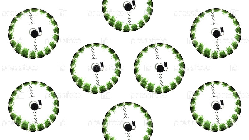 Абстрактные крутящиеся колеса с зеленой растительностью СМИ Концепция современной зеленой фермы