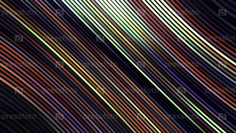 Сгибание узких линий разных цветов и свечение света. Движение. Изогнутые полосы, вид внутри космического тела с изогнутым временем и пространством