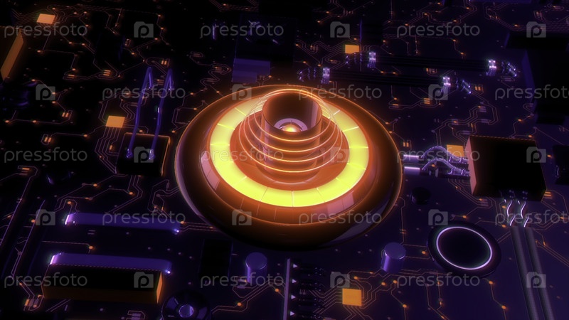 Абстрактная панель управления футуристической компьютерной машины.Светящие индикаторы инопланетного компьютера