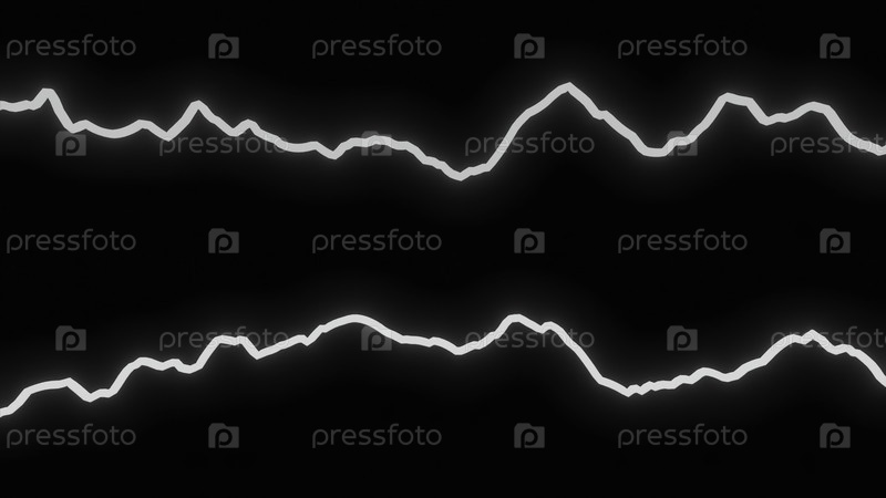 Светящиеся линии вибрируют и перемещаются в волнах на черном фоне. Дизайн. Движущиеся линии напряжения электричества или музыкальный ритм. Волны и волны на неоновых линиях