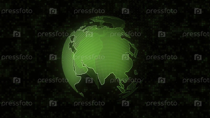 Цветовая голограмма планеты Земля. Движение. Виртуальная голограмма планеты на черном фоне с пикселями. Модель вращающейся земли в киберпространстве